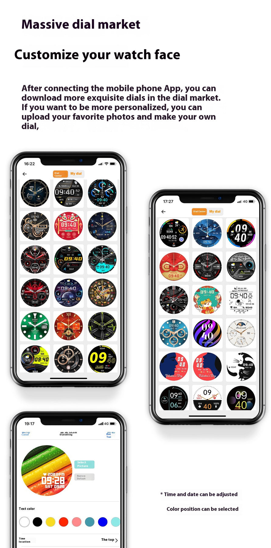 Functions: Waterproof, photographing, step counting, heart rate monitoring, blood pressure measurement, social entertainment, Bluetooth calling, smart reminder, remote control selfie, sleep monitoring, blood oxygen detection